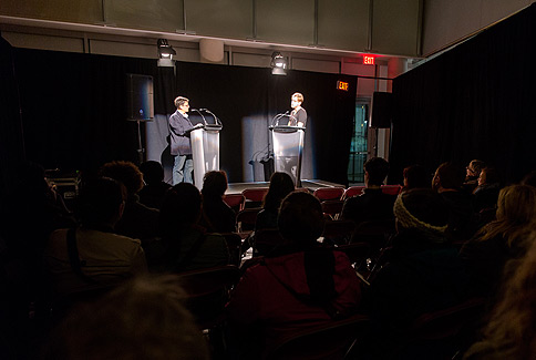 In this updated version of the work, the piece is performed as before but at the end the man & woman change roles and begin the dialogue again (making each performance about 30 minutes each). It was a last minute adjustment I decided upon a few days before the performance. I was curious to see how the reading of the piece and the audiences perception of it would alter when the gender roles were switched. Not surprisingly, the audience reacted very differently to each version... especially whenever we performed this specific phrase pairing: when I would state "Everything is over between us" and Tony would reply "Nothing is over until I say it is" there was always a feeling of tension from the audience and sometimes disapproving groans from women in the audience. Interestingly when we changed roles and Tony would say "Everything is over between us" and i responded with "Nothing is over until i say it is"... the audience would always laugh.