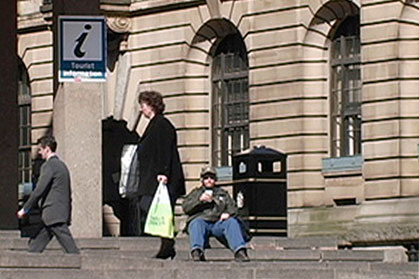 This 5-channel video is based on the original 30 day performance that took place daily between 8:45 am & 9:00 am at Central Tech High School in downtown Toronto. I was invited by at the Ikon Gallery in Birmingham England to recreate this work in the UK. I performed the exact same set of movements as the original Hiccup piece on a set of similar concrete stairs in a very busy public area in downtown Birmingham. For this version I chose to do it between 12:00 & 12:15 pm during lunch hour from Monday to Friday.