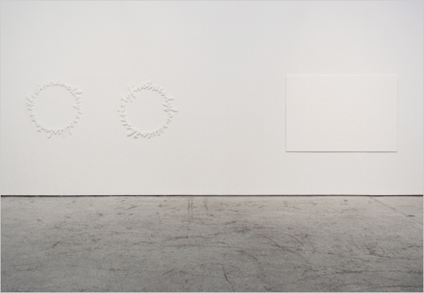 4/4 Circle Texts - 2018 CNC cut sanded acrylic .375” x 36” x 38” diameter Edition of 5 + 1 AP Installation view from It's About Time... at Olga Korper Gallery, Toronto Exhibition History: 2018 Olga Korper Gallery (Toronto ON);