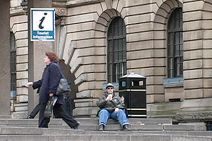 This 5-channel video is based on the original 30 day performance that took place daily between 8:45 am & 9:00 am at Central Tech High School in downtown Toronto. I was invited by at the Ikon Gallery in Birmingham England to recreate this work in the UK. I performed the exact same set of movements as the original Hiccup piece on a set of similar concrete stairs in a very busy public area in downtown Birmingham. For this version I chose to do it between 12:00 & 12:15 pm during lunch hour from Monday to Friday.