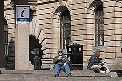 This 5-channel video is based on the original 30 day performance that took place daily between 8:45 am & 9:00 am at Central Tech High School in downtown Toronto. I was invited by at the Ikon Gallery in Birmingham England to recreate this work in the UK. I performed the exact same set of movements as the original Hiccup piece on a set of similar concrete stairs in a very busy public area in downtown Birmingham. For this version I chose to do it between 12:00 & 12:15 pm during lunch hour from Monday to Friday.